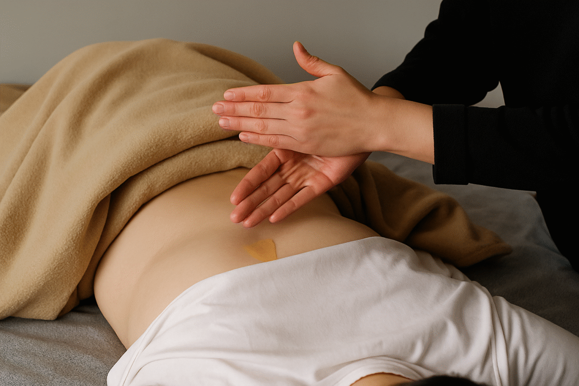 Халаасан алгаа хоёр бөөрний дээр тавьж, зөөлөн дарна. Энэ үед алганы хонхорхой хэсгээрээ бүлээний дулаан илгээж байгаа мэт мэдрэмж төрнө.